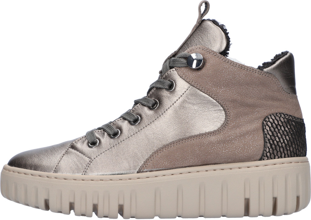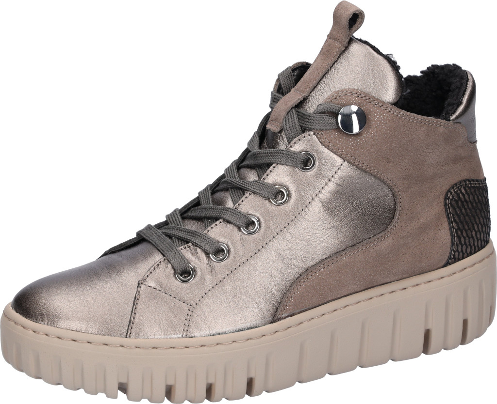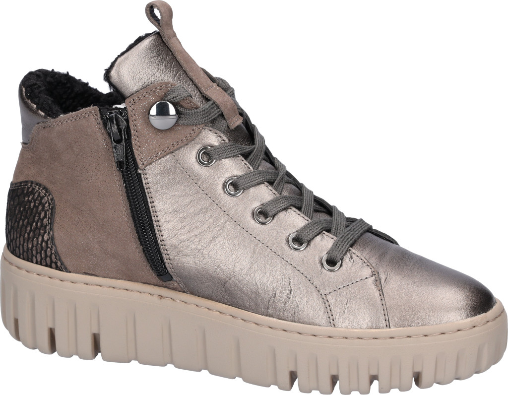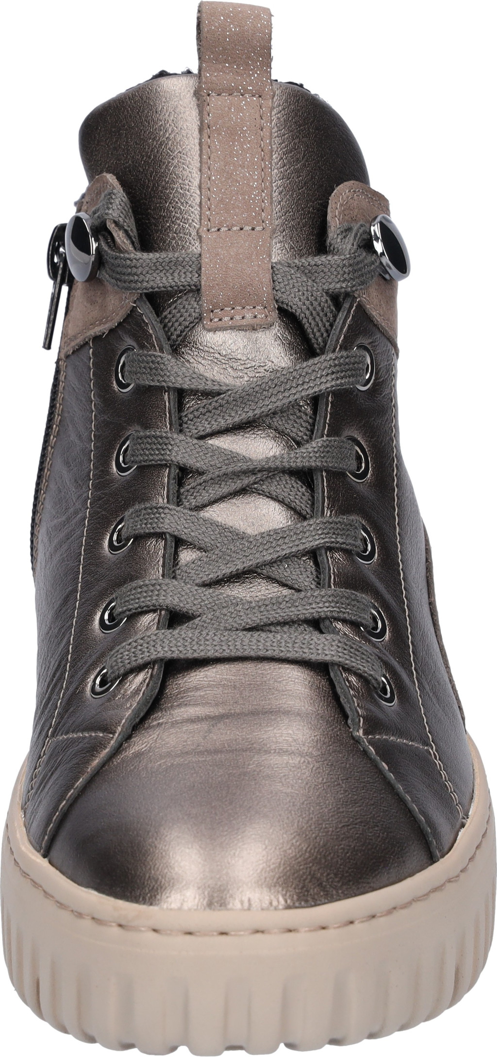 Waldlaufer kényelmi fűzős cipzáras bokacsizma H-Livia fényes bőr bronz szürke