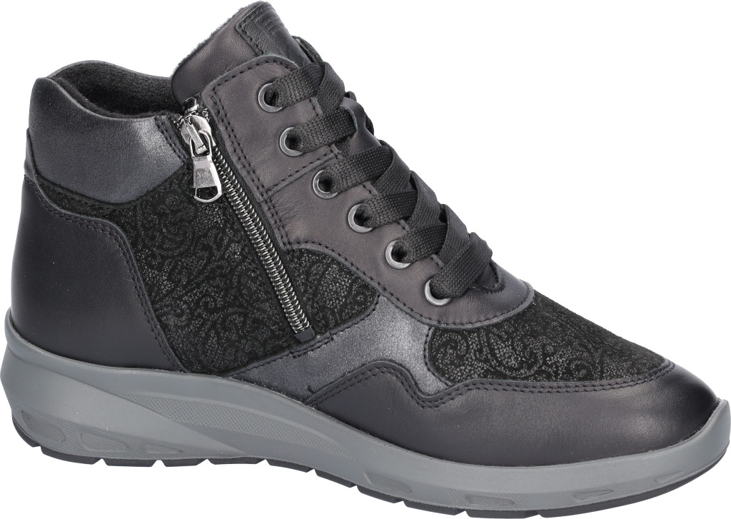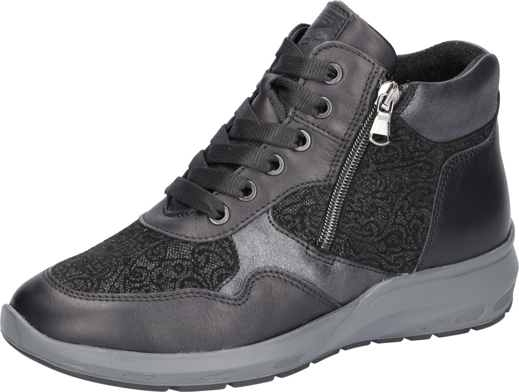 Waldlaufer kényelmi fűzős cipzáras bokacsizma M-Tonia bőr/nubuk fekete